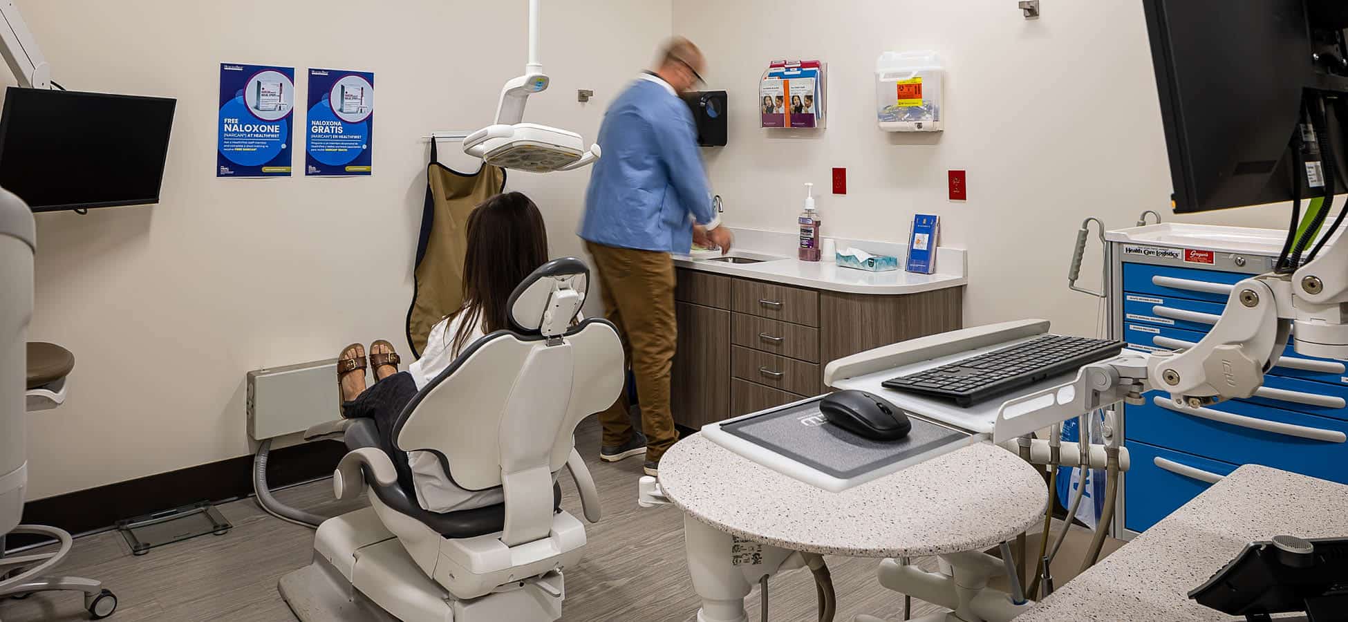 The electrical design of the clinic is equally robust, featuring new electrical panels connected to The MET’s existing infrastructure. A new emergency generator was installed to provide backup power for critical medical equipment and life safety systems. The clinic is equipped with energy-efficient LED lighting and modern lighting controls that meet energy code requirements. Extensive power connections support both medical and administrative equipment, while new HVAC connections, fire alarm devices tied into The MET’s system, card reader access control systems, security cameras, and a sound masking system ensure a safe, secure, and private environment for patients and staff. These integrated systems work together to deliver a seamless, high-performing facility.